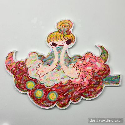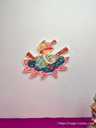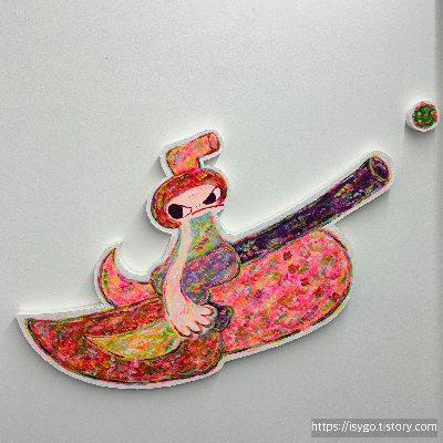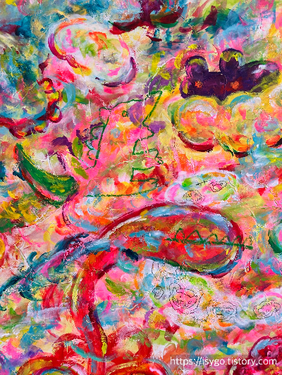 붓이 아닌 손가락으로 펴 발라 그린 그림이라는데, 색감의 경쾌함이 신선하고, 큰 그림 속 작은 디테일에도 감탄을 하며 보게 된다.