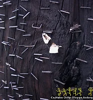 심지가 박힌 삼나무를 발로 꽉 밟고 성긴 톱을 쓰다듬듯이 깊숙이 박는다.